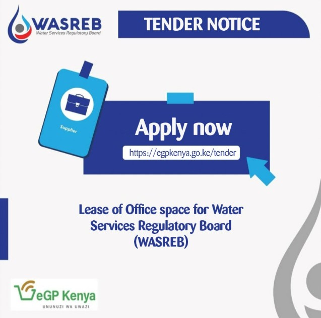NewsNoticesLEASE OF OFFICE SPACELEASE OF OFFICE SPACEGideon TererMarch 9, 2026 Notices1 min read LEASE OFFICE SPACE FOR WATER SERVICES REGULATORY BOARD – WASREB Tender ID : 13376Tender Reference No. : WASREB/788/0016/2025-26 Procuring Entity :WATER SERVICES REGULATORY BOARD Procurement Category :Non-Consultancy Services Procurement method :Open Tender Tender Start Date & Time : 05/03/2026 19:00:00Tender End Date & Time : 25/03/2026 11:30